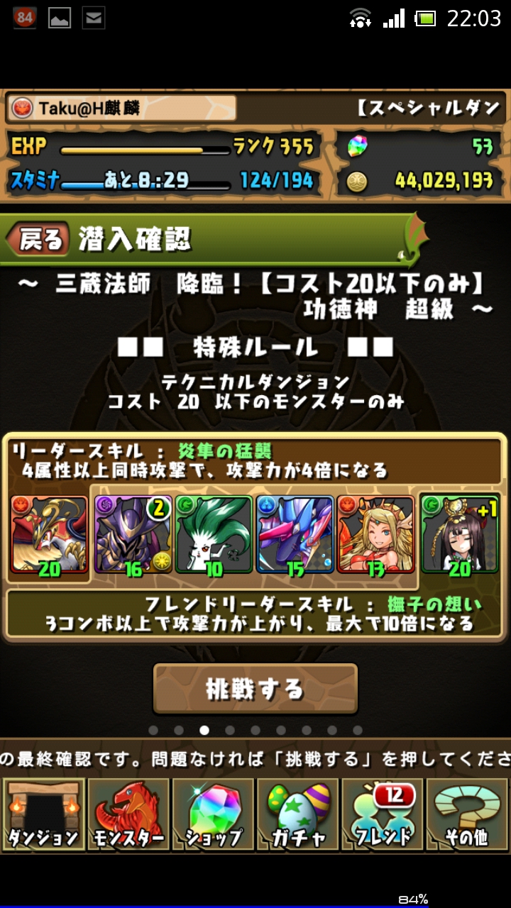 4月12日の12時より「三蔵法師降臨」という新たな降臨ダンジョンが追加されました。