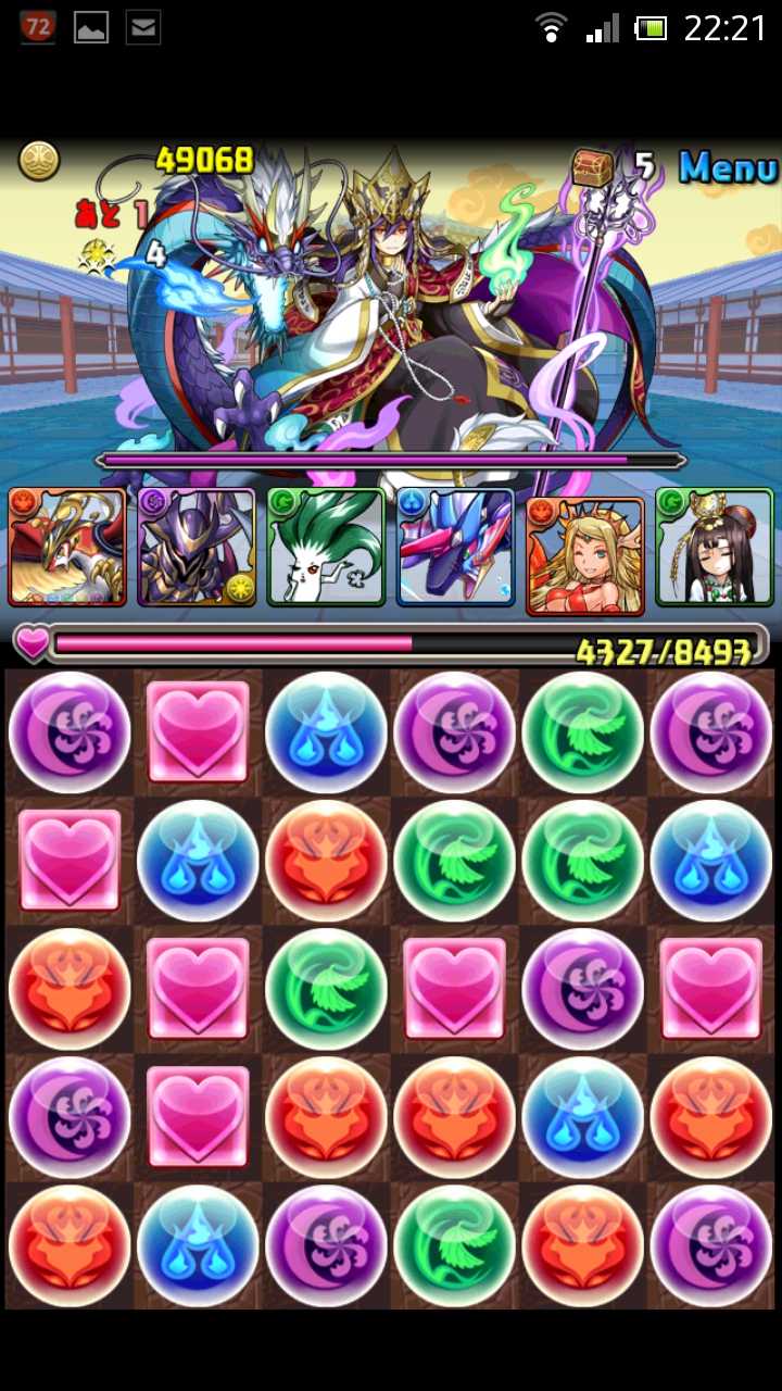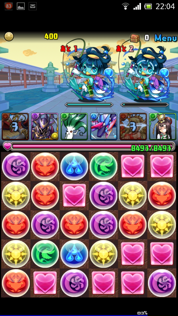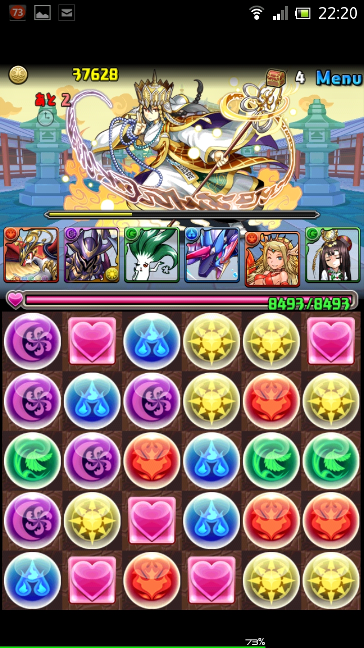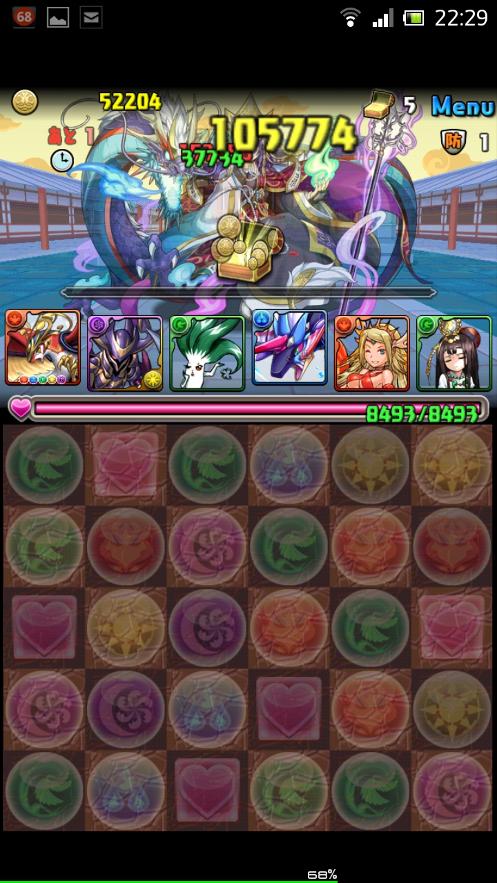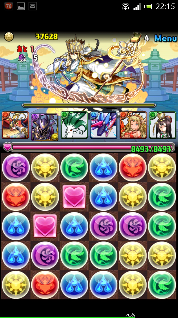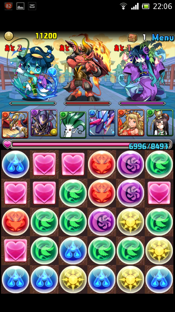 ここはクシナダヒメのリーダースキルだけ発動するように、4色そろえずに適当に4コンボぐらい決めます。そして出来れば1体残るようにします。このあたりはそのパーティの攻撃力に左右されるので、自分で試してみてください。