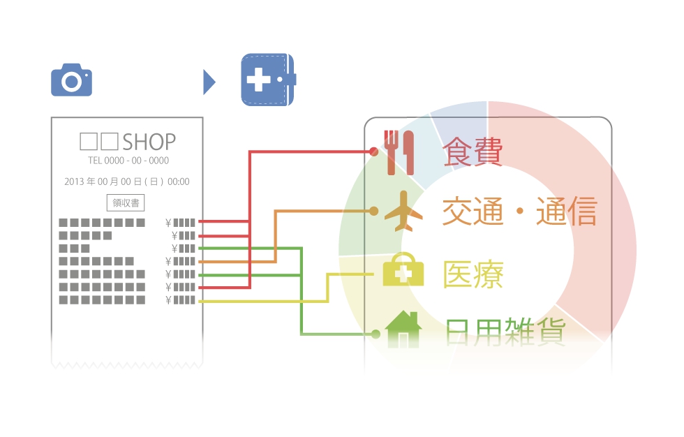 Dr.Walletは送信したレシートをデータ化するときに項目別に仕分けを行ってくれます。