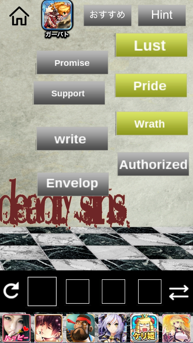世界一簡単な攻略 ステージ6~10|脱出ゲーム攻略 |Page2 脱出ゲーム 更新日時:2015年7月23日 1:53 AM ページタイトルとURLをコピーする ステージ7 壁にある単語から「7つの大罪」に あてはまるものをタップします。 ドアが開きます。脱出しましょう。 ページ: 1 2 3 4 5 前ページへ 次ページへ SQOOLのYouTubeチャンネル スポンサーリンク